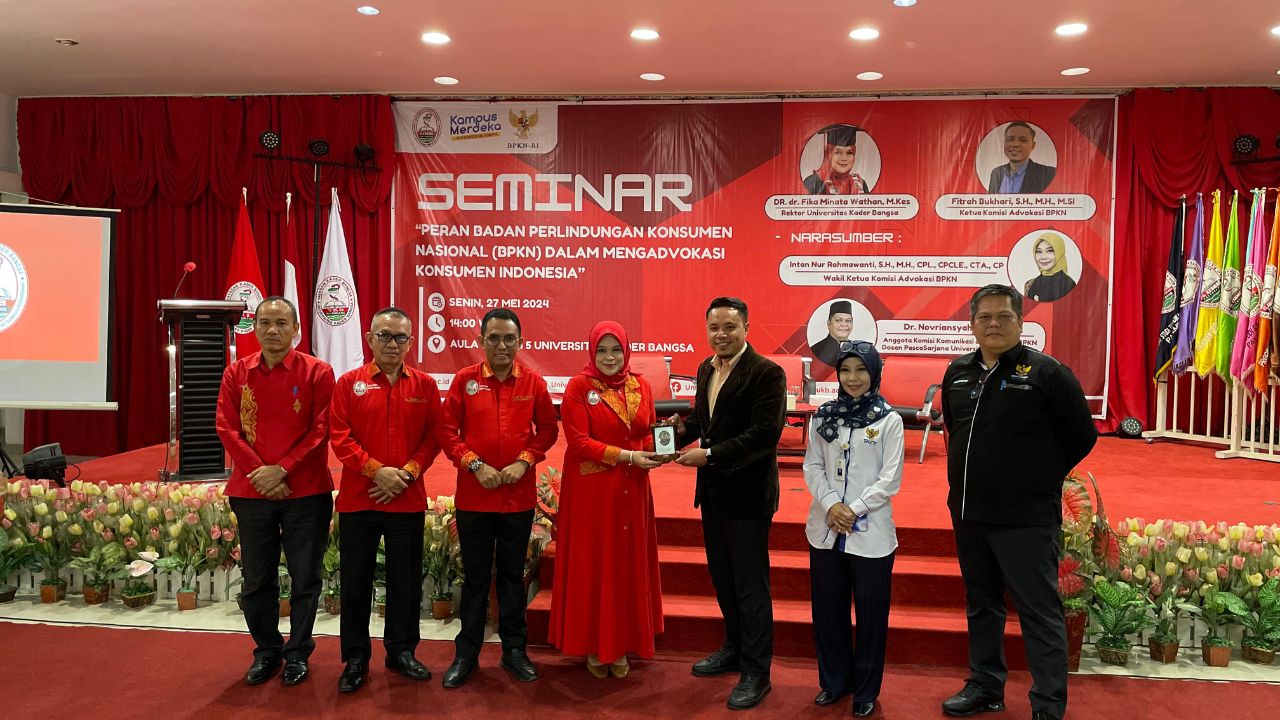 Palembang, 27 Mei 2024 - Badan Perlindungan Konsumen Nasional melalui Komisi Advokasi melakukan Seminar Perlindungan Konsumen dengan tema “Peran Badan Perlindungan Konsumen Nasional Dalam Mengadvokasi Konsumen Indonesia” di Universitas Kader Bangsa sebagai upaya dalam menciptakan sistem perlindungan konsumen yang mengandung unsur kepastian hukum dan keterbukaan informasi serta akses untuk mendapatkan informasi. Kunjungan Advokasi ini disambut baik oleh Dr. dr. Fika Minata Wathan, M.Kes, Rektor Universitas Kader Bangsa, Wakil Rektor, para Dosen, serta mahasiswa/I Universitas Kader Bangsa. “Harapan saya dalam Advokasi Perlindungan Konsumen ini agar para mahasiswa mengetahui hak konsumen dan kewajiban pelaku usaha, guna menjadi konsumen yang cerdas dan bermartabat”, tutur Ketua Komisi Advokasi BPKN Fitrah Bukhari, SH., M.Si., MH saat memberikan sambutan serta apresiasi dan ucapan terima kasih atas penyambutan BPKN, Pemaparan materi Advokasi diberikan oleh Wakil Ketua Komisi Advokasi Intan Nur Rahmawanti, SH., MH dan anggota Komisi Komunikasi dan Edukasi Dr. Novriansyah, S.H., M.H